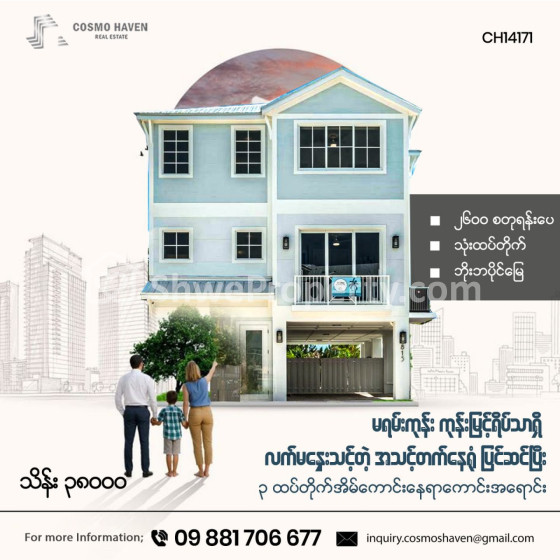 ရန်ကုန်တိုင်းဒေသကြီး မရမ်းကုန်း ရောင်းရန်ရှိသော အဆင့်မြင့်လုံးချင်းအိမ်