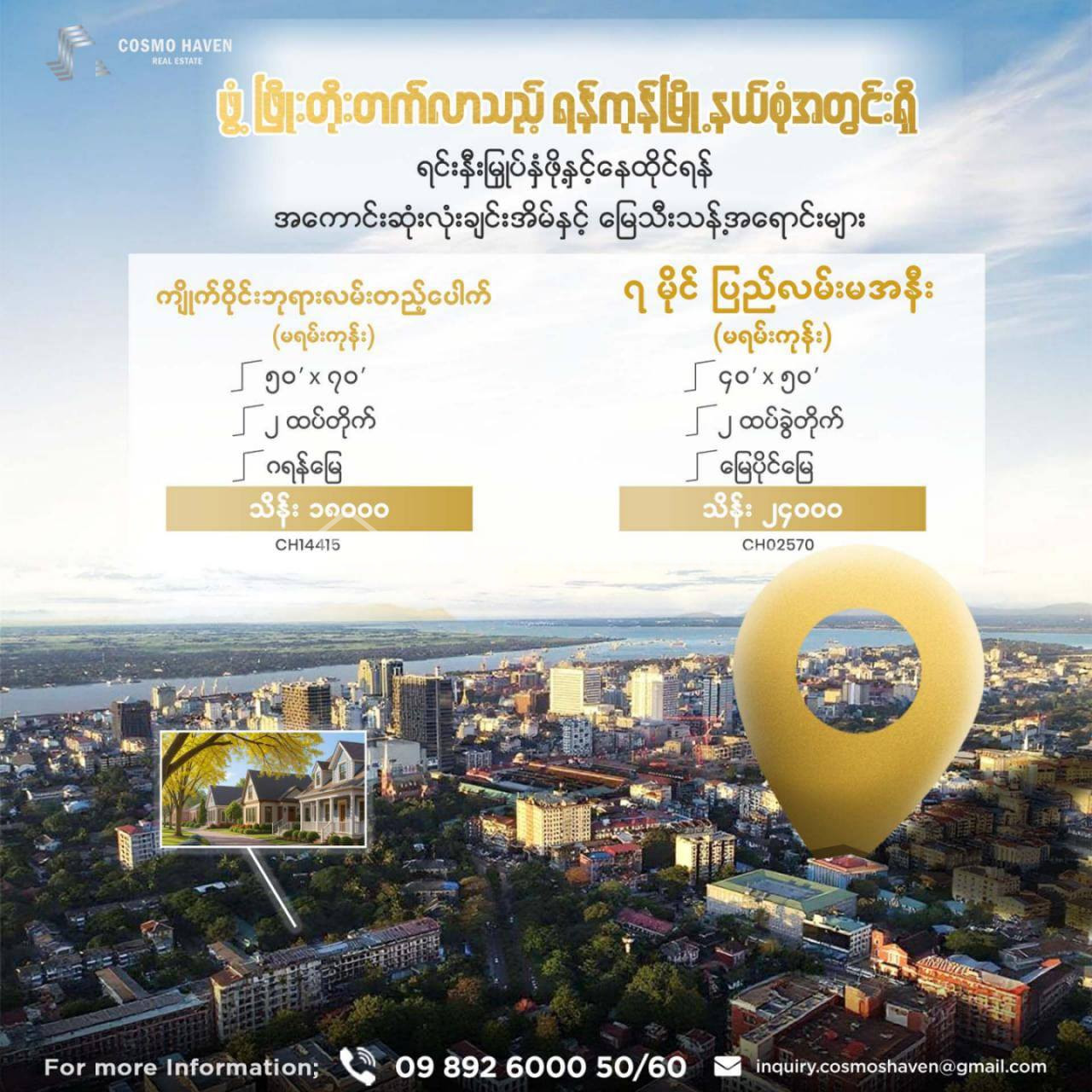 🏡 📌🏘️🌟လူကြီးမင်းတို့အတွက်ရန်ကုန်မြို့မှာ နေရာလဲကောင်းမယ် ပိုင်ဆိုင်မှုလဲအခိုင်အမာရှိပြီး အနာဂတ်အတွက်လဲတန်ဖိုးမြင့်တက်နိုင်မည့် မြို့နယ်စုံရှိ လုံးချင်းအိမ်နှင့် မြေနေရာအရောင်းများကို ကျွန်မတို့ Cosmo Haven Real Estate မှ တစုတစည်းထဲရွေးချယ်ဖော်ပြလိုက်ပါတယ်ရှင်🌟