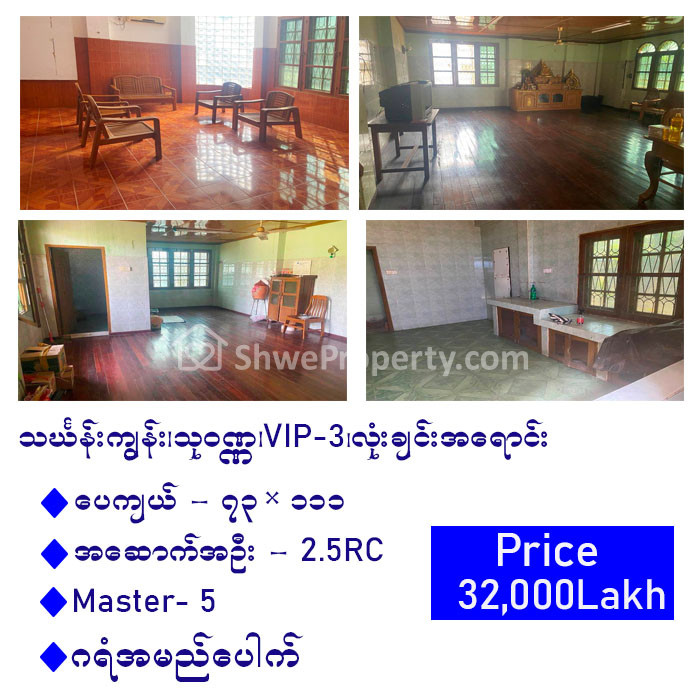 အိပ်ခန်း ၅ ခန်း ရေချိုးခန်း ၆ ခန်း ပါ ရန်ကုန်တိုင်းဒေသကြီး သင်္ဃန်းကျွန်း မြို့နယ်ရှိ ရောင်းရန်ရှိသော လုံးချင်းအိမ်