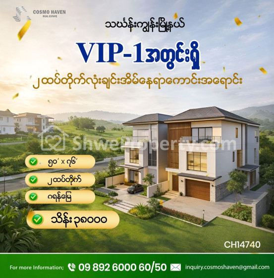 အိမ်ခြံမြေ အမည် : သင်္ဃန်းကျွန်းမြို့နယ် Vip-1 အတွင်းရှိ၂ထပ်တိုက်လုံးချင်းအိမ်နေရာကောင်းအရောင်း/Landed House For Sales Thingangyun Township In Yangon/09892600050,09892600060