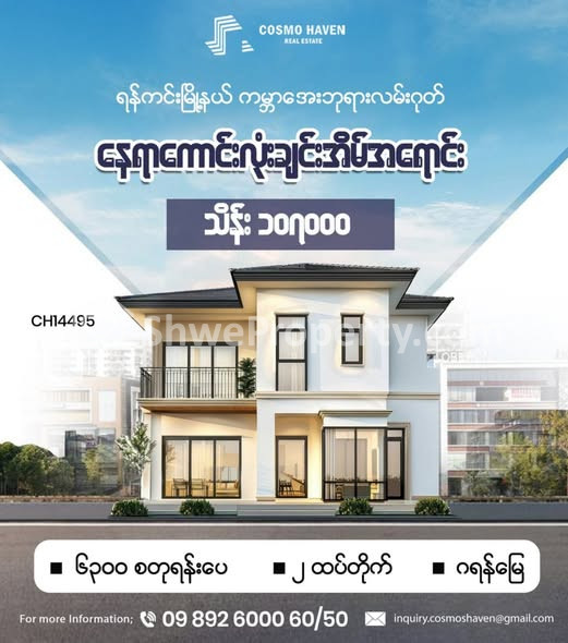 လူကြီးမင်း လုပ်ငန်းရှင်ကြီးတို့အနေဖြင့် နေထိုင်ဖို့ပဲဖြစ်ဖြစ် ၊ ရင်းနှီးမြှုပ်နှံဖို့ပဲဖြစ်ဖြစ် လုံး၀လက်မနှေးသင့်သောနေရာကောင်းလုံးချင်းအိမ်အရောင်းလေးတစ်ခုကို ကျွန်တော်တို့ Cosmo Heaven Estate နှင့်အတူ ရွေးချယ်ဝယ်ယူနိုင်ပါပြီခင်ဗျာ✨️🎉