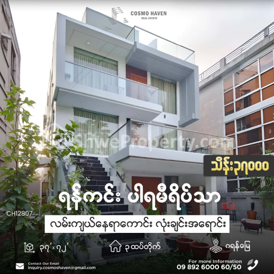 ရန်ကုန်တိုင်းဒေသကြီး ရန်ကင်း ရောင်းရန်ရှိသော အဆင့်မြင့်လုံးချင်းအိမ်