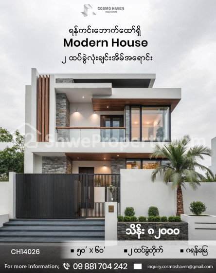 ရန်ကင်း ဘောက်ထော် ရှိ ModernHouse ၂ ထပ်ခွဲတိုက်အသစ်စက်စက် အရောင်း
