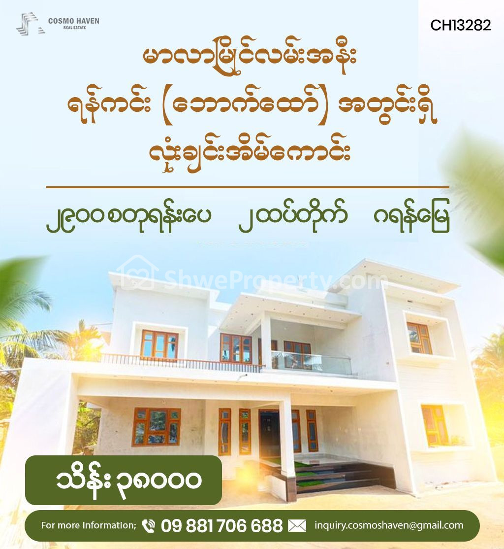 အိမ်ခြံမြေ အမည် : မာလာမြိုင်လမ်းအနီး၊ ရန်ကင်း (ဘောက်ထော်) အတွင်းရှိ လုံးချင်းအိမ်ကောင်း/Landed House for Sales Yankin Township in Yangon/09892600050,09892600060