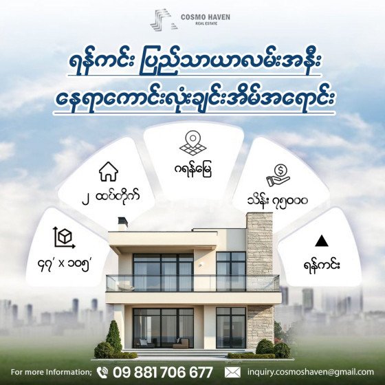 #ရန်ကင်းပြည်သာယာလမ်းအနီးနေရာကောင်းလုံးချင်းအိမ်အရောင်း